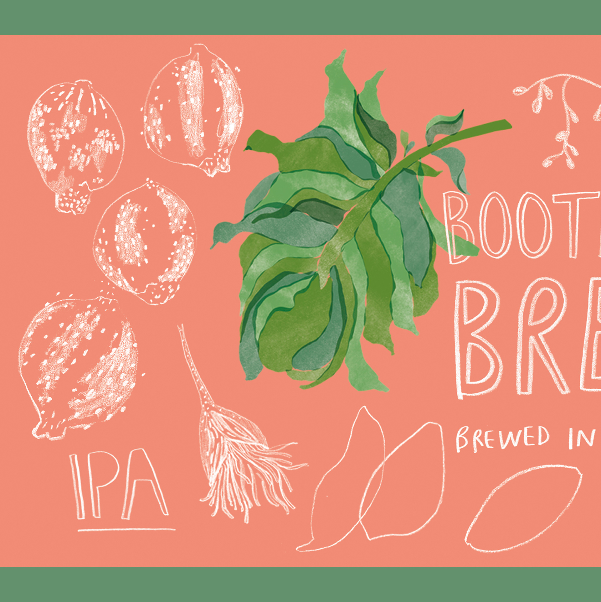 Packaging for a local IPA. Visual language dissects parts of hops, the plant that makes IPA.